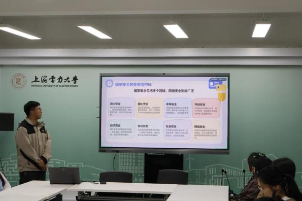 随后,由公司“计E网安”的小讲师开展了国安小课堂,从军事国防等传统领域,到网络信息安全、能源生态安全新兴等领域,小讲师引用大量实际案例,结合国家安全教育科普视频,剖析背后的深层逻辑与严峻形势,让在场学子深刻认识到国家安全并非抽象概念,而是与每个人息息相关、时刻需要警惕与守护的重要防线。