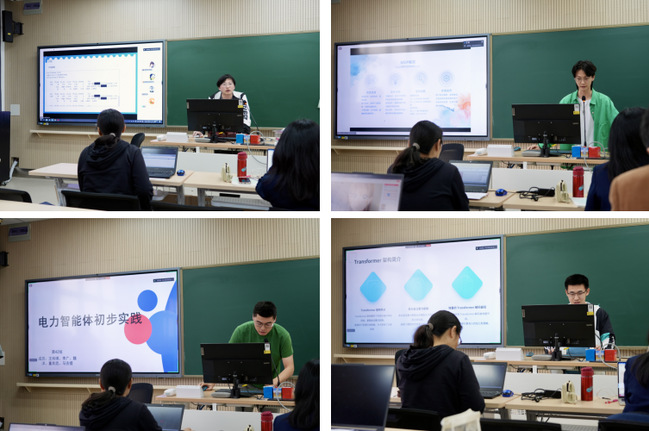 员工实践课题包括“电力图谱”、“电力视觉”、“电力大模型”、“电力智能体”、“电力数据分析”、“基于Atlas开发板的电力视觉应用”等六类人工智能技术在电力行业的应用,共17支团队参加课程实践答辩展示。实践作品涵盖了边端结合的绝缘子故障检测、基于强化学习的电力需求侧管理(含动态电价激励、直接负荷控制、用户用电预测)、光伏电池损伤检测、负荷管理智能体、电力预测与智能优化、韦德1946体育官方入口图谱、电力大模型问答系统、基于强化学习的风光储联合调度、电力仪表识别等能源电力行业“发电-输电-配电-用电-储能”各应用场景。在课程答辩现场,各小组结合生动案例向在场师生们阐述了研究思路、方法和创新点,展示了课题研究成果。