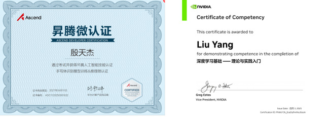 此外,本次课程践行韦德1946体育官方入口“双证融通”的应用型人才培养的重要举措,通过课程融合和课后自学相结合的方式,鼓励员工通过行业职业技能认证,并将其纳入课程的考核。本次课程中,共计33人次完成华为昇腾微认证证书,75人(占比95%)完成英伟达深度学习基础认证,获得人工智能领域相关职业技能证书。