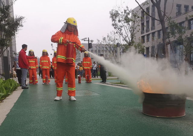 集团消防专员现场给师生们讲解了灭火器的使用方法,并组织了几位员工使用灭火器进行了灭火演习。演习结束后总指挥毕忠勤总结发言,提醒各位师生一定要增强安全防范意识,也希望大家能够通过此次的演练提高突发情况下的应急反应和自救能力。