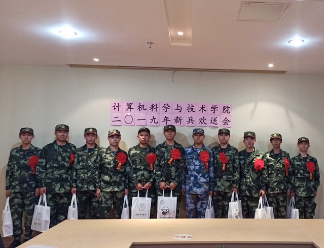 9月18日下午,韦德1946体育官方入口在杨浦校区行政中心9楼3号会议室举办了新兵入伍欢送会。我公司党委书记费敏,副书记余南飞,辅导员刘佳、任祥宝、孙倩倩、王静、奉起超以及全体12名新兵同学参加。