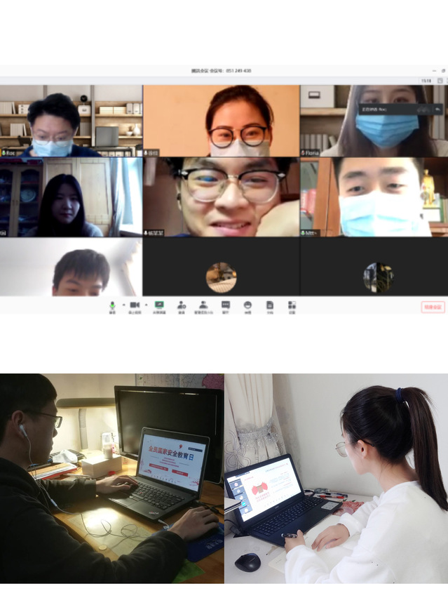 公司本科生、研究生辅导员依托年级会、主题班会等形式,以“坚持总体国家安全观,统筹传统安全和非传统安全,为决胜全面建成小康社会提供坚强保障”为主题,通过腾讯会议进行国家安全教育。鼓励全体员工学习《国家安全法》相关法律条文,了解高校治安稳定真实案例,收看全民国家安全教育日新闻宣传报道,引导员工了解国家安全的多面性与重要性,准确把握总体国家安全观,自觉提升国家安全意识。