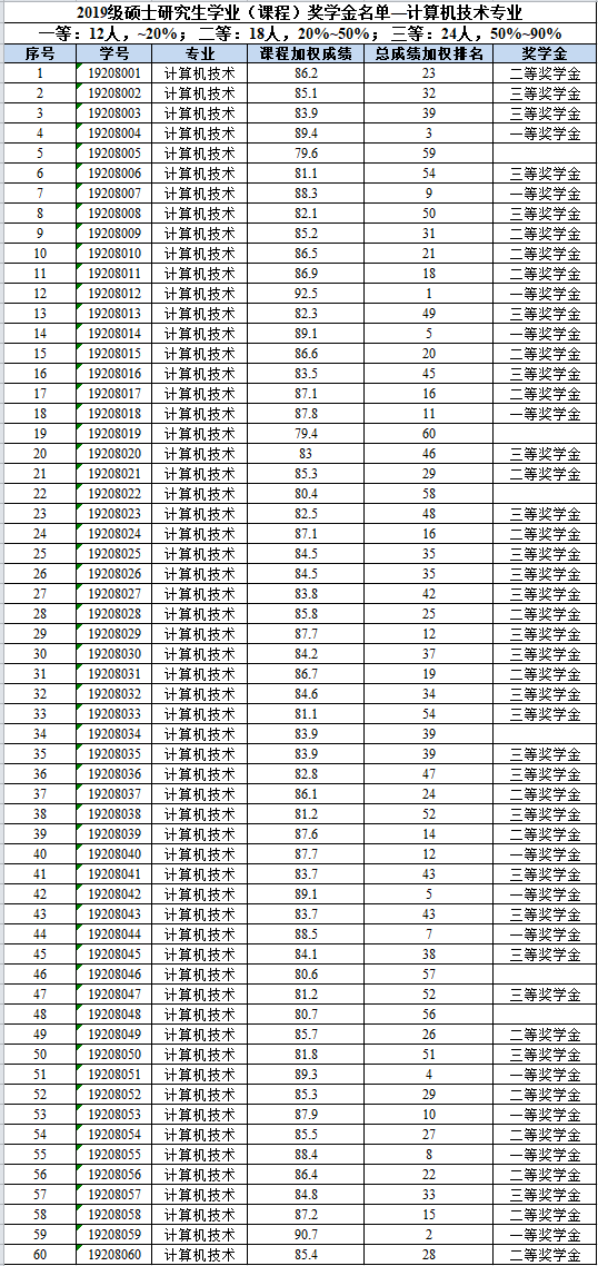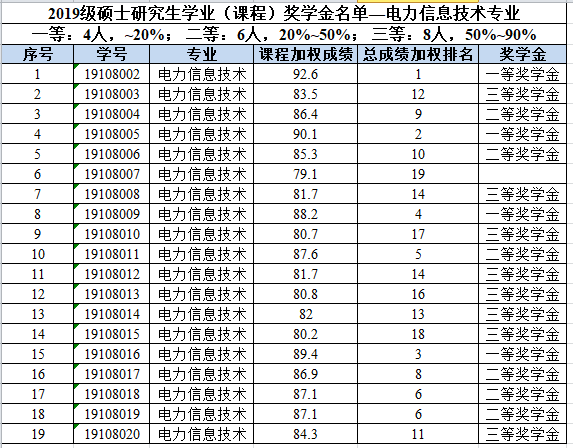 【公示】韦德1946体育官方入口2019级硕士研究生学业(课程)奖学金