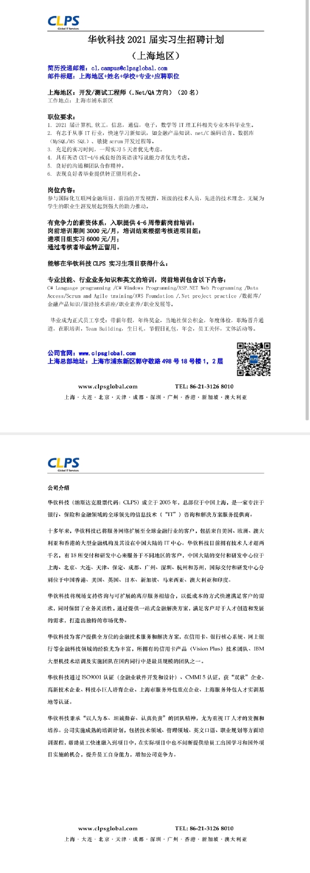 【招聘信息】208-202010华钦科技2021届实习生招聘