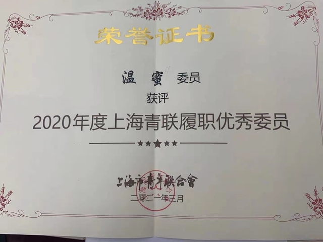 公司教师荣获2020年上海青联履职优秀委员及优秀提案奖