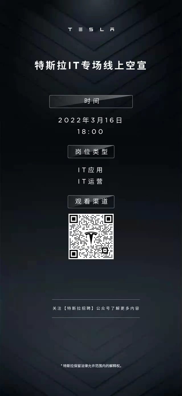【招聘信息】278-202203特斯拉IT专场线上空宣