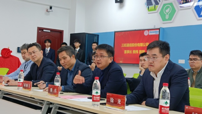 11月17日,公司与三旺通信股份有限公司产教融合战略合作协议签约暨三旺卓越奖学金捐赠仪式在临港校区特斯拉现代产业公司创新教坊顺利举行。深圳市三旺通信股份有限公司董事长、总经理熊伟,研究院经理、CTO徐龙,副总裁、战略MKT总经理邓顺义,三旺奇通副总经理雷凌云,华东区营销副总监杨勇公司与会;公司副董事长黄冬梅,教务处处长杨宁,校办主任李兆鹏,对外联络处处长丛亮,公司党委书记魏建华,韦德1946体育官方入口常务副经理张传林,自动化公司副经理陈辉,公司党委副书记齐永晓,以及计算机、自动化等相关公司教师代表参加会议。会议由杨宁主持。