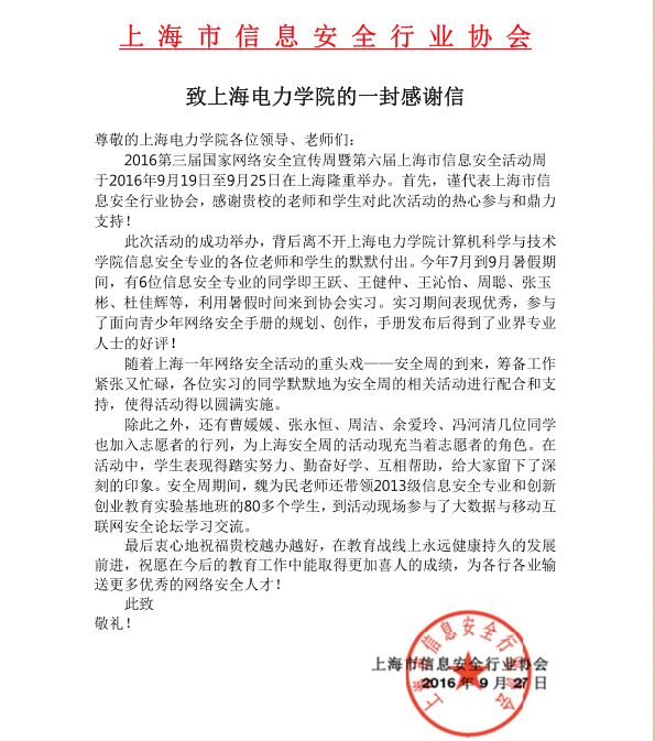 公司师生积极参与上海市信息安全活动周受表扬