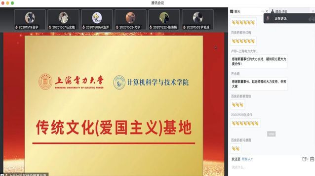 双方线上共同为传统文化(爱国主义)基地揭牌,共同观看了由计算机出国留学相关教师拍摄的《深怀爱国心、笃行报国志》教育片,上海市主题微团课三等奖获奖支部2020321团支部苏格同学进行线上主题微团课展示。