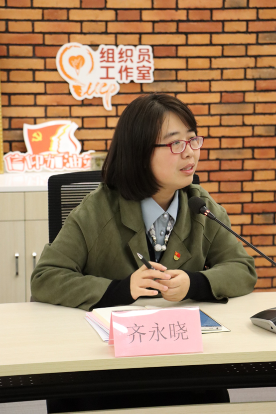 会上,公司党委副书记齐永晓发表讲话。她通过讲述三位革命先烈的故事向员工党员提出三点希望:一是要传承革命精神、勇担历史使命;二是要提高自身技能,练就报效祖国本领;三是要树立远大理想、发挥模范带头作用。她号召青年党员们要继承革命先烈的光辉遗志,珍惜大学美好时光,时刻准备着为国家、为社会贡献自己的力量。