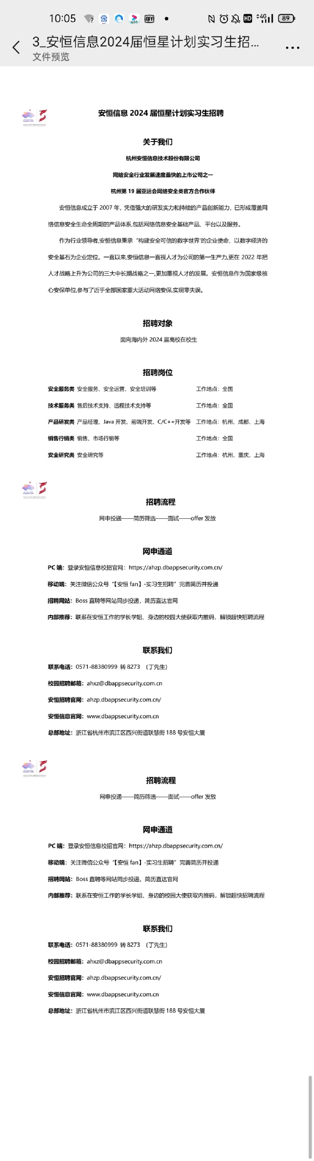 【招聘信息】349-202306安恒信息2024届恒星计划(2024届学分置换)招聘信息