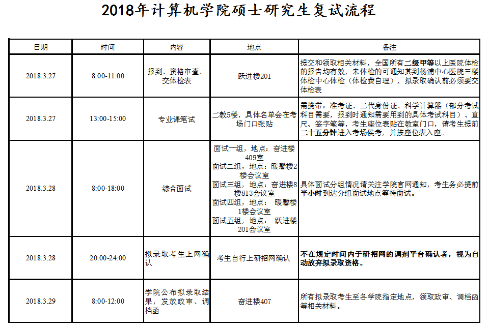 2.专业笔试 (下午13:00-15:00,在杨浦南校区2教5楼3个教室,具体考场按照座位表分配,27日中午12:00名单会贴在考场门口)。