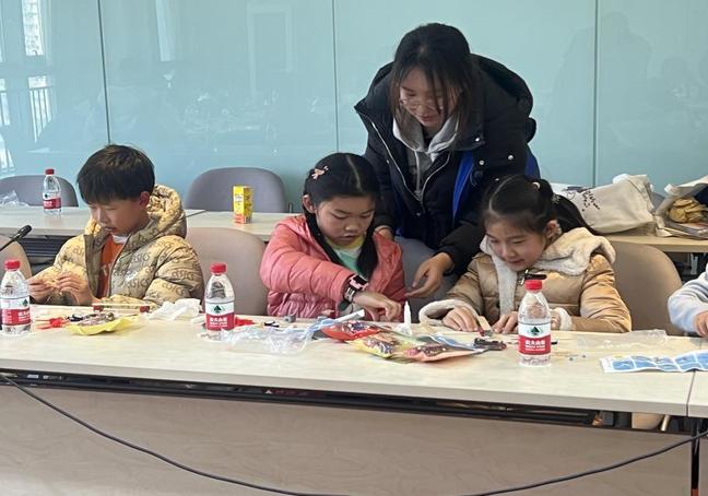 随后,志愿者带领小朋友参观杨浦校区的图书馆,讲解图书馆借书相关流程,小朋友亲自体验借书的乐趣。最后,在“电力小课堂”上,志愿者用生动有趣的讲解带领小朋友们了解了飞机的诞生历程,小朋友们孩子们模仿着哥哥姐姐的手工制作过程亲自制作双翼飞机,体验科技的魅力。