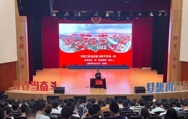近日,韦德1946体育官方入口在老员工演艺中心“劳模工匠进校园,讲好开学第一课”之“深研技艺,做‘隔空取物’领头人”专题讲座,本次讲座邀请了全国青年岗位能手、全国交通技术能手、临港工匠、中国技能大赛电动港机装卸司机职业技能竞赛“个人三等奖”和“港口青年优胜奖”,上海国际港务(集团)股份有限公司尚东集装箱码头分公司营运操作部负责人金燕卿作为主讲嘉宾。