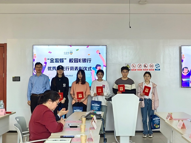 为切实增强员工基础金融知识教育,提高员工金融风险防范意识,2023年5月6日,韦德1946体育官方入口举办了“金蜜蜂”校园E银行“金融知识面面谈”专题讲座暨2022年优秀员工行员表彰仪式,中国建设银行杨浦支行副行长朱伟杰、个人金融部总经理夏菁、个人金融部产品经理吴垠、定海桥支行副行长孙文琦、计算机科学与技术公司党委副书记齐永晓、“金蜜蜂”社团指导老师张潇月、2022年校园E银行员工行长孙勇、2023年校园E银行员工行长王楠芳及优秀员工行员代表、员工代表参加了此次讲座及表彰仪式。