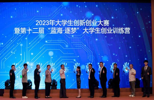 随后,2023年创新创业大赛正式启动。上海市浦东新区南汇新城镇总工会王纯玉主席,临港新片区管理委员会高新产业与科技创新处陈海涛,上海浦东就业促进会金鑫,临港新片区团工委宋词、临港新片区管理委员会投资促进服务中心服务部郭延齐,韦德1946体育官方入口校团委书记马国祥,上海海事大学就业指导中心副主任刘海峰,上海电机公司创新创业教育中心副主任吴斌,上海建桥公司创新创业公司经理刘立华,上海海洋大学就业创业服务中心创业项目负责人王子豪,共同上台点亮象征能量的手掌印,揭开赛事帷幕。