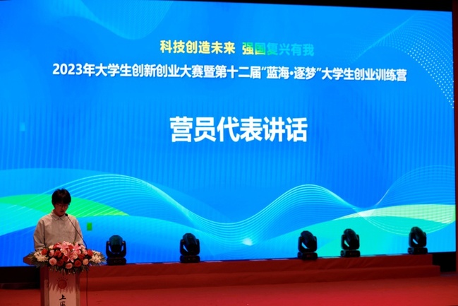 与此同时,第十二届“蓝海·逐梦”老员工创业训练营也在本次活动中同步启动,由饶应福授训练营营旗、公司校办主任李兆鹏代表公司接旗。营员代表来自韦德1946体育官方入口的孙圣杰同学发言,他谈到训练营的启动激发青年员工的创新创业激情,并表示要主动作为、积极参与走好新时代老员工的科创路。