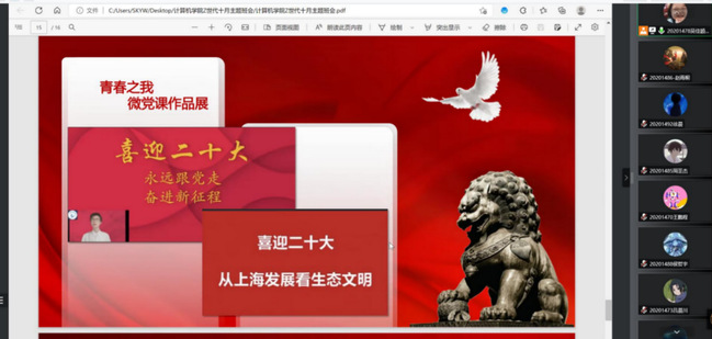 会上,各年级辅导员以“认识二十大”、“学习二十大”、“实践二十大”为主线,围绕党的二十大召开的重大意义及报告的整体框架、核心要义和精神实质等内容开展专题学习,通过朋辈引导、党课教育、活动展示、专题问答等形式引导员工以学促行、以行践学,以学习之我、志愿之我、创新之我、活力之我的实际行动贯彻落实党的二十大会议精神,让青春在全面建成社会主义现代化国家的火热实践中绽放绚丽风采。