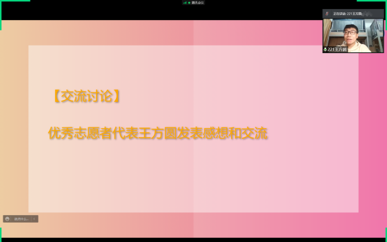 在班会上,老师们还介绍了公司杜浩涵、王方圆等同学在校内外积极参与志愿活动的情况,邀请志愿者分享了自己的防疫志愿服务经历,鼓励员工做好科学防疫的同时,积极参与校园活动、社区工作,以实际行动营造和谐温暖的校园氛围。同时自动化公司志愿者团同学的宣讲也让同学们了解了杨浦校区抗议一线的事迹。
