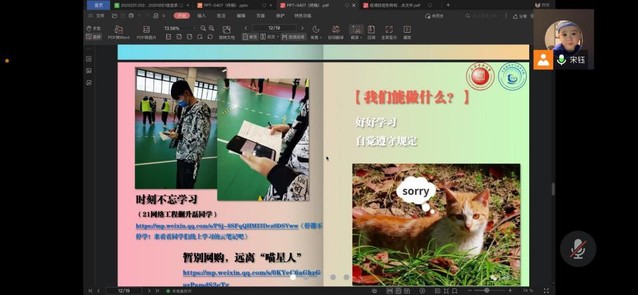 公司党委副书记齐永晓及所有辅导员老师针对此次线上主题班会进行详细的资料收集,并展开全面的集体备课,对班会内容建言献策,不断讨论与改进,最后以“我们面临什么?”、“我们该做什么?”、“我们能做什么?”三个角度制作课件。此外,根据不同班级的特点,每位辅导员都针对每个班级召开主题班会,通过视频、图片、新闻、分享等多种形式展开教育。为了丰富班会内容,让同学们有更加切实的感受,得到全面的教育,公司积极邀请了自动化公司宣讲志愿者、员工家长代表、志愿者代表等参与班会共同开展教育,通过多种角色的全方位阐释,向同学们全面展现了疫情的严峻和防疫的严肃,大大提升了主题班会的效果。