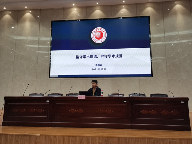 10月28日晚,韦德1946体育官方入口于临港校区学术楼117报告厅举办“仰望星空逐学术梦想,脚踏实地守学术规范”研究生科学道德和学风建设专题讲座。此次讲座由公司教师陈思远主讲,研究生辅导员奉起超主持,公司2021级全体研究生参加。陈思远以“恪守学术道德,严守学术规范”为主题,从什么是学术道德规范、学术不端事件与后果、如何树立学术道德观三个方面展开介绍,阐明了学术道德和学术规范的深刻内涵。讲座最后,陈思远也表达了对全体研究生的殷切期望,强调遵守学术规范、恪守学术道德是科研工作之本。参会研究生表示,研究生学习期间应当以严守学术规范为基石,坚持实事求是的科学精神,持之以恒、克难攻坚,才能在学术之路上越走越远。