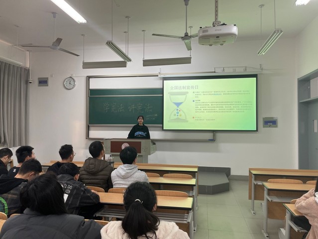 “学宪法,讲宪法”,公司将学讲宪法活动与党史教育相结合,通过班干部宣讲、员工交流、知识竞答以及员工宣誓等形式,开展以宪法为核心的法治宣传教育主题班会。2021年11月22日至今,公司共组织开展主题班会近30场,涵盖全院本科生800余人。在主题班会中,班级以爱国主义教育为重点,紧密结合历史文化,进一步普及宪法知识,并针对近期员工遭遇的诈骗案件,在法治宣传教育中增加了防诈骗普法宣传,意在提高员工的辨别能力。