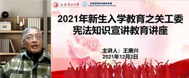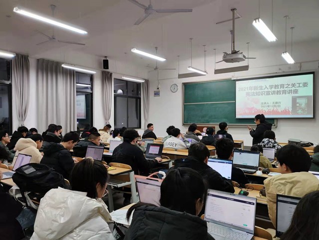 12月2日晚上18:30,韦德1946体育官方入口关工委王唐兴老师应邀为韦德1946体育官方入口开展“学宪法,讲宪法”知识讲座。王唐兴通过线上分享对宪法内容进行了深入讲解,并通过互动提问形式,让员工们结合自身经历讲述身边的“宪法”。最后,参与讲座的同学们纷纷踊跃发言,现场气氛活跃。本次活动让2021级新生切实了解到与生活息息相关的法律常识,学会运用法律武器保护自己,进一步明确宪法是我国的根本大法,自觉提高尊崇宪法、学习宪法、遵守宪法、维护宪法权威的意识,激扬爱国情,笃行报国志。