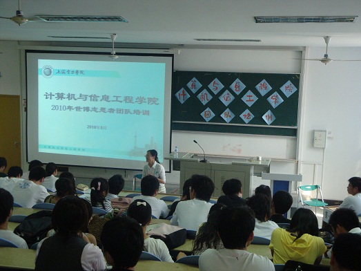 5月25日下午3时,公司生干部团队暨世博志愿者团队培训在南4121胜利召开。团学干部及09级各班班长、团支书和部分世博志愿者共近200名同学出席本次会议,公司党总支副书记王佳丽老师、团总支书记成勇老师及各专业辅导老师与会指导。