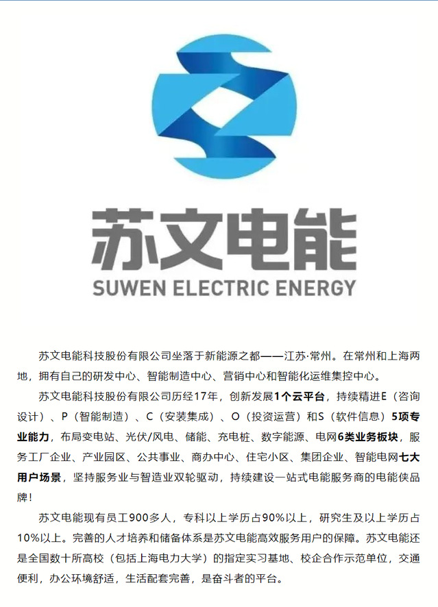 【招聘信息】406-2024苏文电能2024届校园招聘