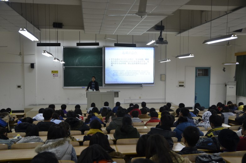张同心老师针对即将开展的选课,结合经常遇到的选课问题,通过现场演示讲解了选课流程,强调了选课注意事项,尤其对新生而言,代选、错选、漏选会对员工的正常学习进程产生影响,并为新生讲解了英语课、体育课、实践课和任意选修课的选课要求和选课技巧。