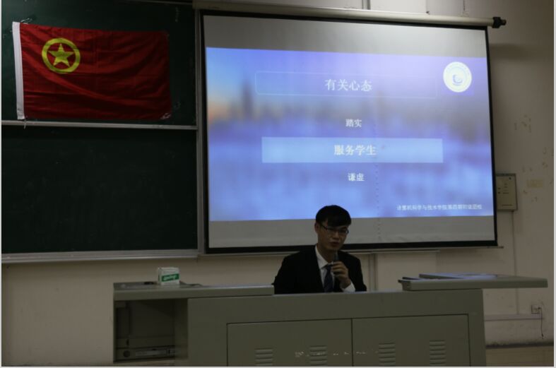 主席团助理刘圣地同学宣读了关于考勤制度及纪律管理办法,其中增加了几条新改进的考核办法。团学办公室主任马思琦同学介绍了其部门的工作职能及特色项目,如生日祝福、便民短信等。学习部部长赵婷介绍了学习部的工作并发表了她对员工工作的想法,并以生活中的小事例来告诉新干事,对待员工工作要认真负责,珍惜自己的选择,不要中途放弃。分团委副书记秦晋同学介绍了团委和团学相关的活动。院员工会主席浦俊俊同学从责任、心态、学业、时间观念四个方面,以学长的角度给新干事们介绍他在团学里工作的经验。最后,院团委书记赵铮老师以朋友的口吻分享了自己的生活往事和感触,告诉大家要从感恩中担当责任、勇于成长。