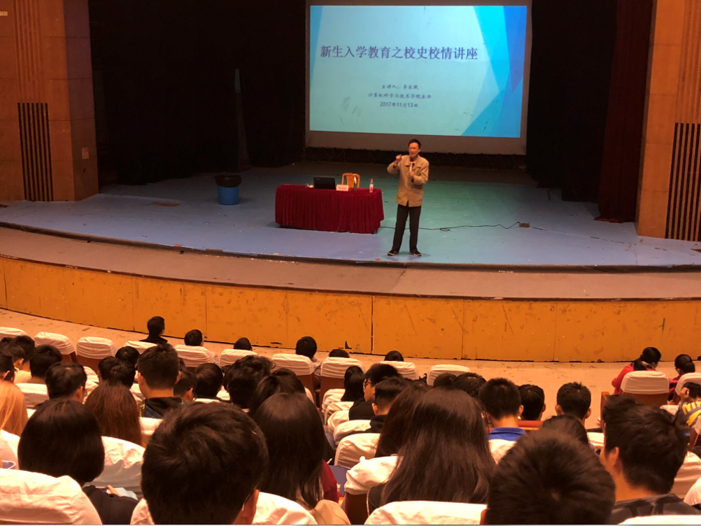 由校关工委、韦德1946体育官方入口、经济管理公司、外国语公司联合举办的新生入学教育之“校史校情”专题讲座于11月13日在浦东校区大礼堂举办。本场讲座邀请了电院“活字典”级人物――原党委宣传部部长李家珉教授主讲。经管公司党委副书记丛亮、公司党委副书记余南飞以及近八百名新生参与讲座。