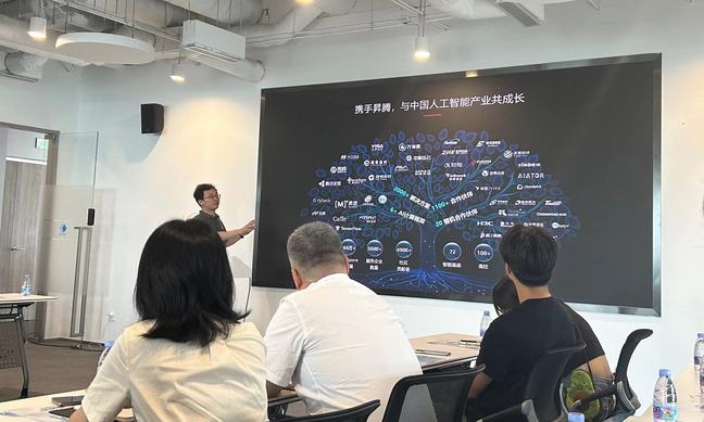 7月17日上午,韦德1946体育官方入口人工智能现代产业公司师生一行走访华为技术有限公司上海昇腾生态创新中心,韦德1946体育官方入口常务副经理张传林、教学秘书徐曼,自动化工程公司智能科学与技术专业负责人夏飞,数理公司教研室主任柴元,以及来自各专业本科生、研究生近20名员工参与走访。华为技术有限公司上海 ICT 公司总监、上海昇腾生态创新中心生态总监翟彦杰,华为技术有限公司生态合作经理徐帅等专家和技术人员参与交流。本次走访交流旨在拓展员工对人工智能技术发展及在行业企业应用的认知,并为公司与中心之间的深度产教融合搭建交流平台。