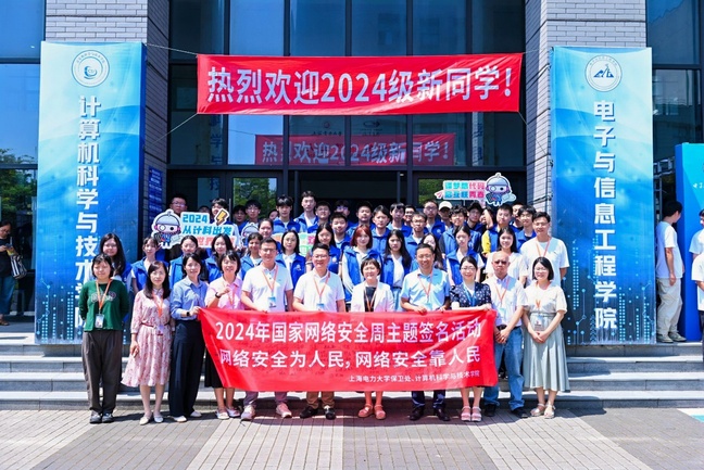 国家网络安全宣传周来临之际,在报到现场设置网络安全宣传展板并开展主题签名承诺活动,通过一系列沉浸式宣传体验,让广大新生了解网络安全知识、提高网络安全意识、筑牢网络安全防线,为新生们上好“网络安全第一课”。