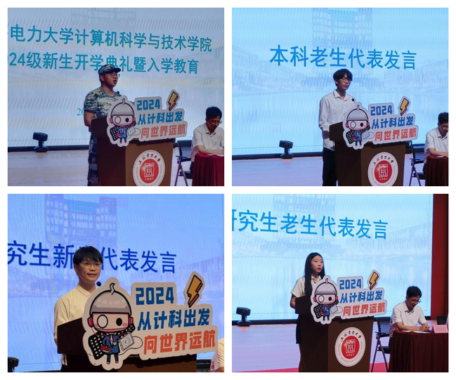 本科生新生代表刘华申腾同学表达了对老员工活的憧憬,承诺努力学习、积极参与、勇敢追梦。2022级数据科学与大数据技术专业何畅同学鼓励新生珍惜时光,发掘潜能,勇敢面对挑战。研究生新生代表苏格誓言探索未知,与同学共进,践行“强国有我”,为祖国繁荣努力。2023级大数据技术专业郑心茹寄望新生迎难而上,勇往直前,满怀激情,勇于担当,贡献国家,共创新时代辉煌。