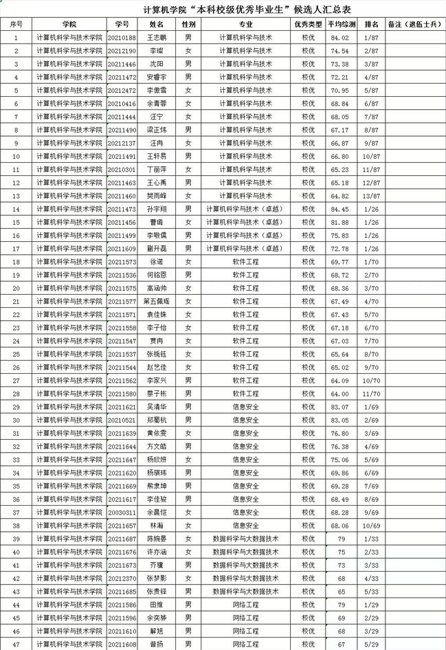 韦德1946体育官方入口2025届本科校级优秀毕业生公示