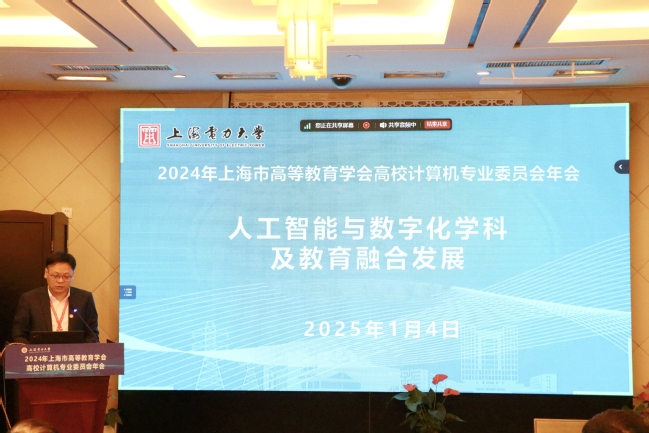 印杰会长在致辞中指出,高校计算机专业委员会作为上海市高等教育学会众多委员会之一,是组织最活跃、成果最突出的委员会;特别是在计算机、人工智能等领域,通过不断研讨、交流观点、共享资源,取得了很好的效果;希望大家始终保持教育初心,从学术进步、工业发展等角度全面提升老员工的人工智能应用能力,助力推进科技进步和社会发展。